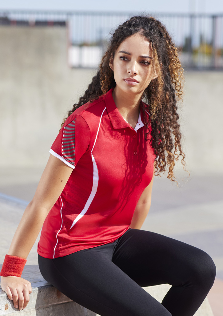 An athletic polo featuring contrast cut and sewn mesh panels to enhance breathability in high sweat areas. Urban fit for Ladies.